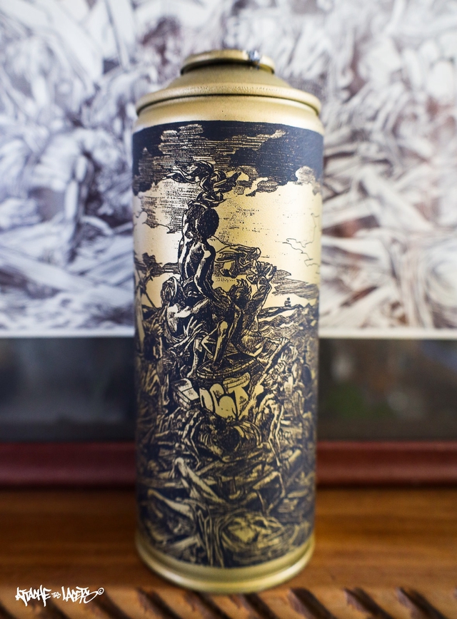 Bombe Or gravée - Le Wildstyle de la Méduse (Réf : "Le Radeau de la Méduse" de Théodore Géricault).